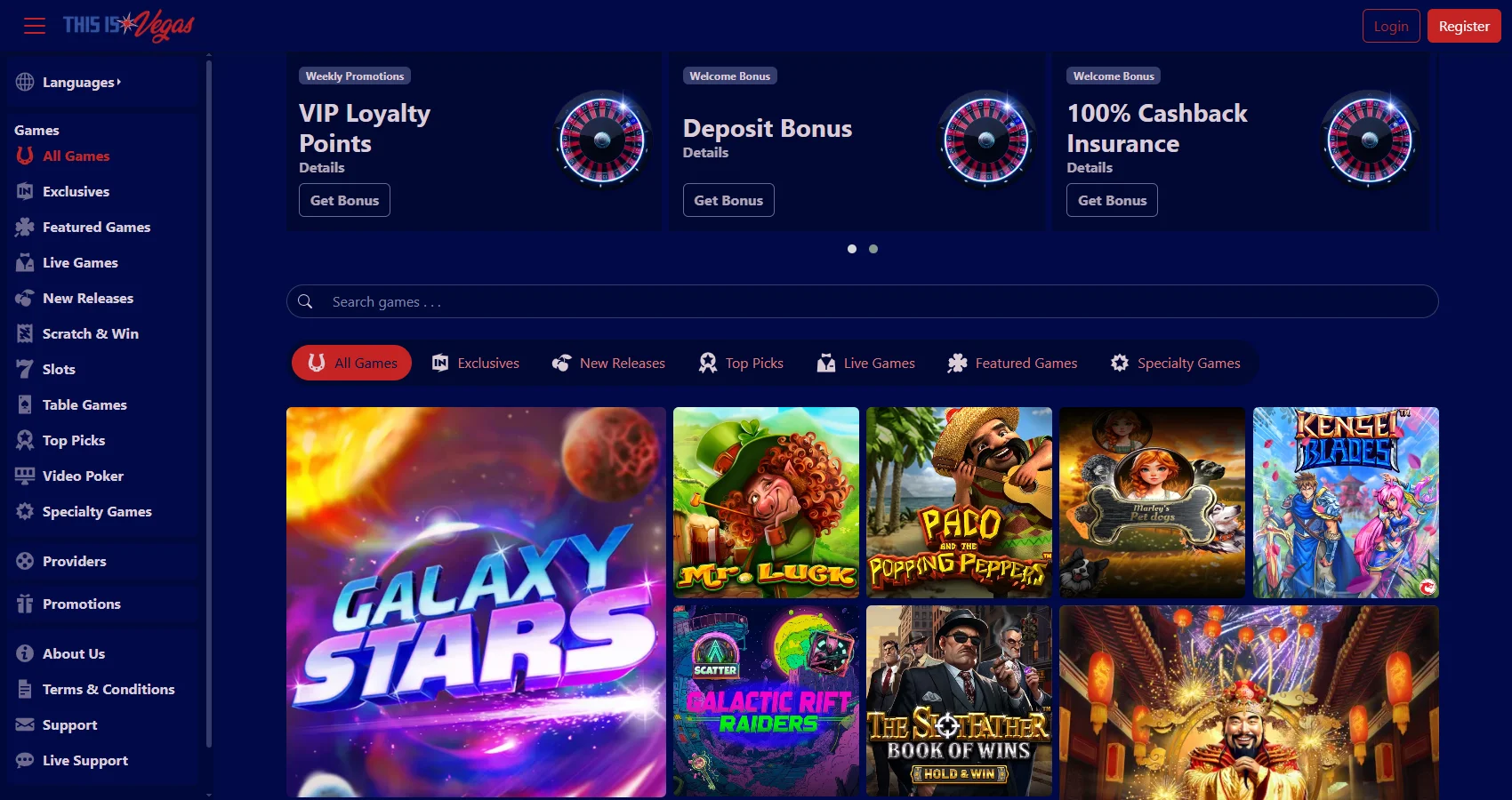 This is Vegas Casino is an average online casino scoring 2.93/10 overall. With 300 games from 7 providers and 95.5% median slot RTP, it delivers a competitive gaming experience. Best suited for US players who value local currency support.