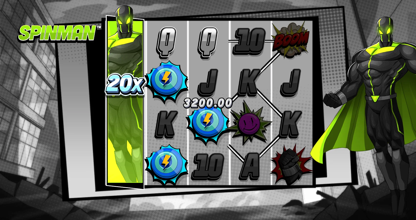 🦸 Hello fellow slot enthusiasts! Hacksaw Gaming making a superhero slot sounds like an obvious move, and that's exactly what Spinman is. Take the multiplier wheel from SixSixSix, dress it up in a neon comic book costume, and call it "Justice." The result borrows heavily from Hacksaw's own catalog but packages it with enough visual flair and a clever dual-volatility system to stand on its own. Whether that's enough depends on how many Hacksaw wheels you've already spun.